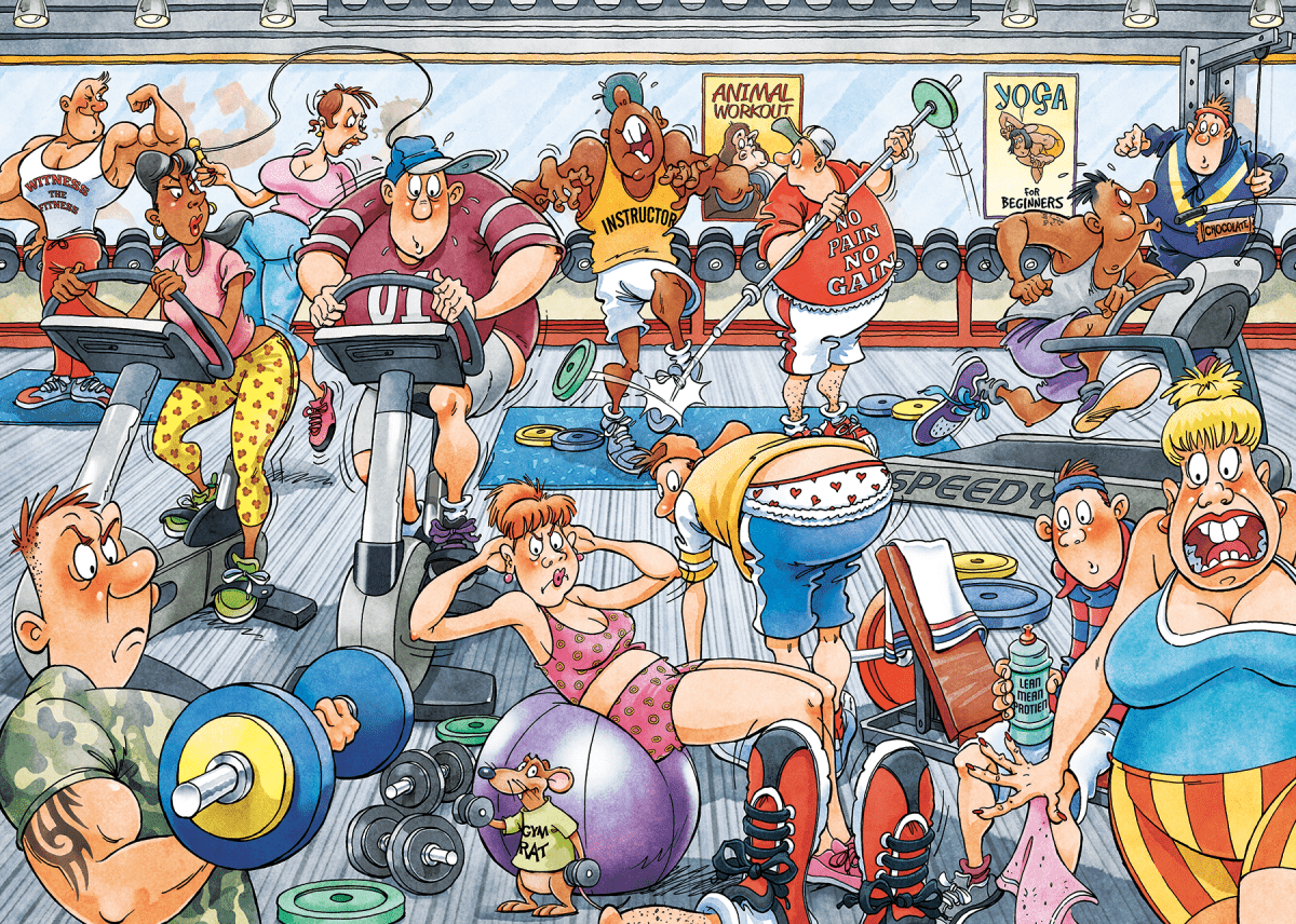 I dette Wasgij Original-puslespil skal du ikke lægge motivet på æsken, men i stedet det, som hovedpersonen ser. Det kræver både fantasi og sans for humor at finde ud af, hvad der egentlig foregår i dette livlige træningslokale.