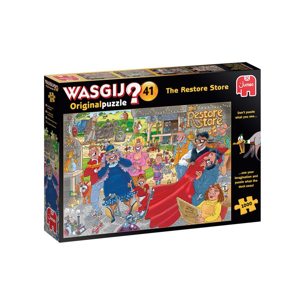 Er du klar til en sjov og udfordrende puslespilsoplevelse? Præsenterer Wasgij Original 41: The Restore Store! fra Jumbo. Dette 1000-brikkers puslespil er perfekt til puslespilsentusiaster fra 11 år og opefter, der elsker grafik, tegneserier og shoppingtemaer.